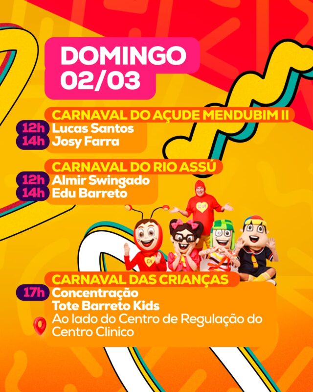 Confira a Programação completa do Carnaval de Assú 2025: