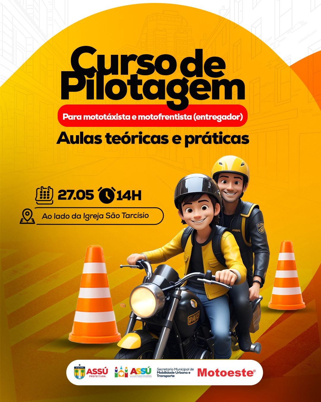 A Prefeitura do Assú, por meio da Secretaria de Mobilidade Urbana e Transporte, apoia a realização de um curso de pilotagem gratuito voltado para mototaxistas e motofrentistas (entregadores) do município, promovido pela empresa Motoeste.