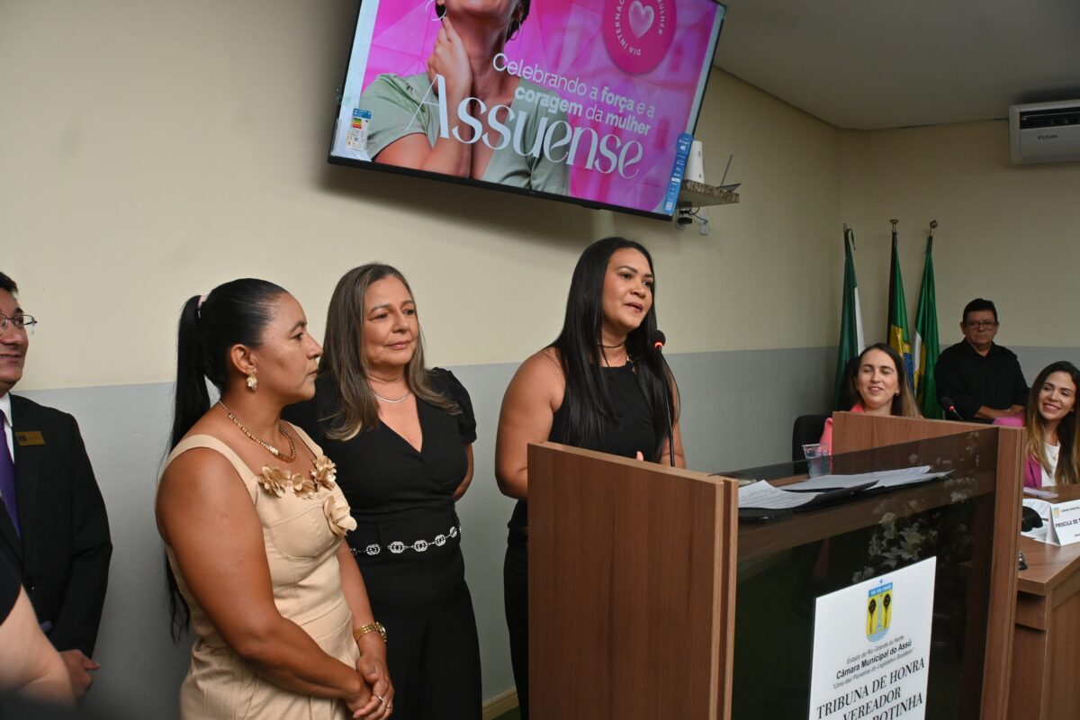 Na noite desta quarta-feira (19), o prefeito Lula Soares e a vice-prefeita Isabela Morais participaram da Sessão Solene em comemoração ao Dia Internacional da Mulher, realizada na Câmara Municipal de Assú. A solenidade foi proposta pelas vereadoras Priscila de Terceiro, Gigi da Saúde e Letícia de João Paulo, em reconhecimento à força e determinação das mulheres assuenses que contribuem diariamente para o desenvolvimento da cidade.