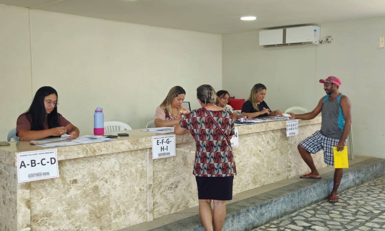 A Prefeitura do Assú, por meio da Secretaria de Assistência Social, segue com a entrega do Vale Cidadão, programa que garante apoio direto às famílias em situação de vulnerabilidade social no município. Nesta sexta-feira, dia 11 de abril, foi a vez dos moradores dos bairros Feliz Assú e Novo Horizonte receberem seus benefícios, com a distribuição acontecendo no auditório da própria Secretaria.