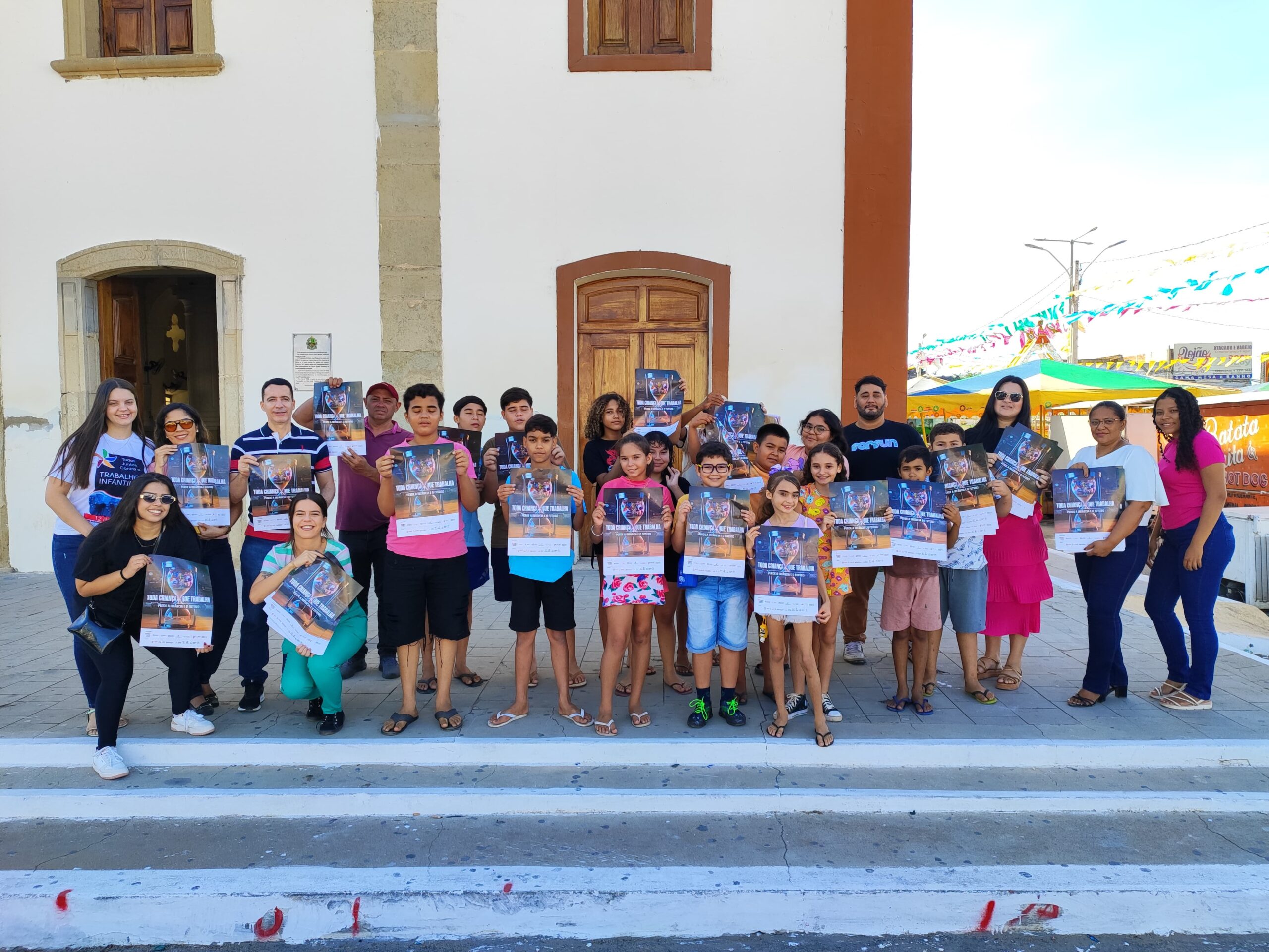 A atividade teve como objetivo alertar a população sobre os riscos e impactos do trabalho infantil, além de reforçar os canais de denúncia. Durante a manhã, foram distribuídos panfletos informativos e fixados cartazes em prédios do comércio local, levando a mensagem de combate a essa grave violação de direitos.