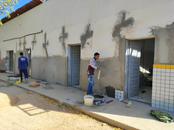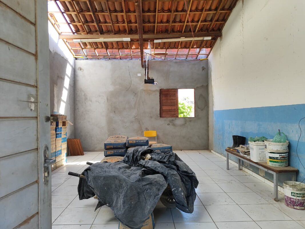 A cantina também está passando por melhorias de reestruturação, e o piso do pátio receberá pavimento intertravado, evitando acúmulo de água nos períodos de chuva, proporcionando mais segurança e funcionalidade para o uso diário do espaço escolar.