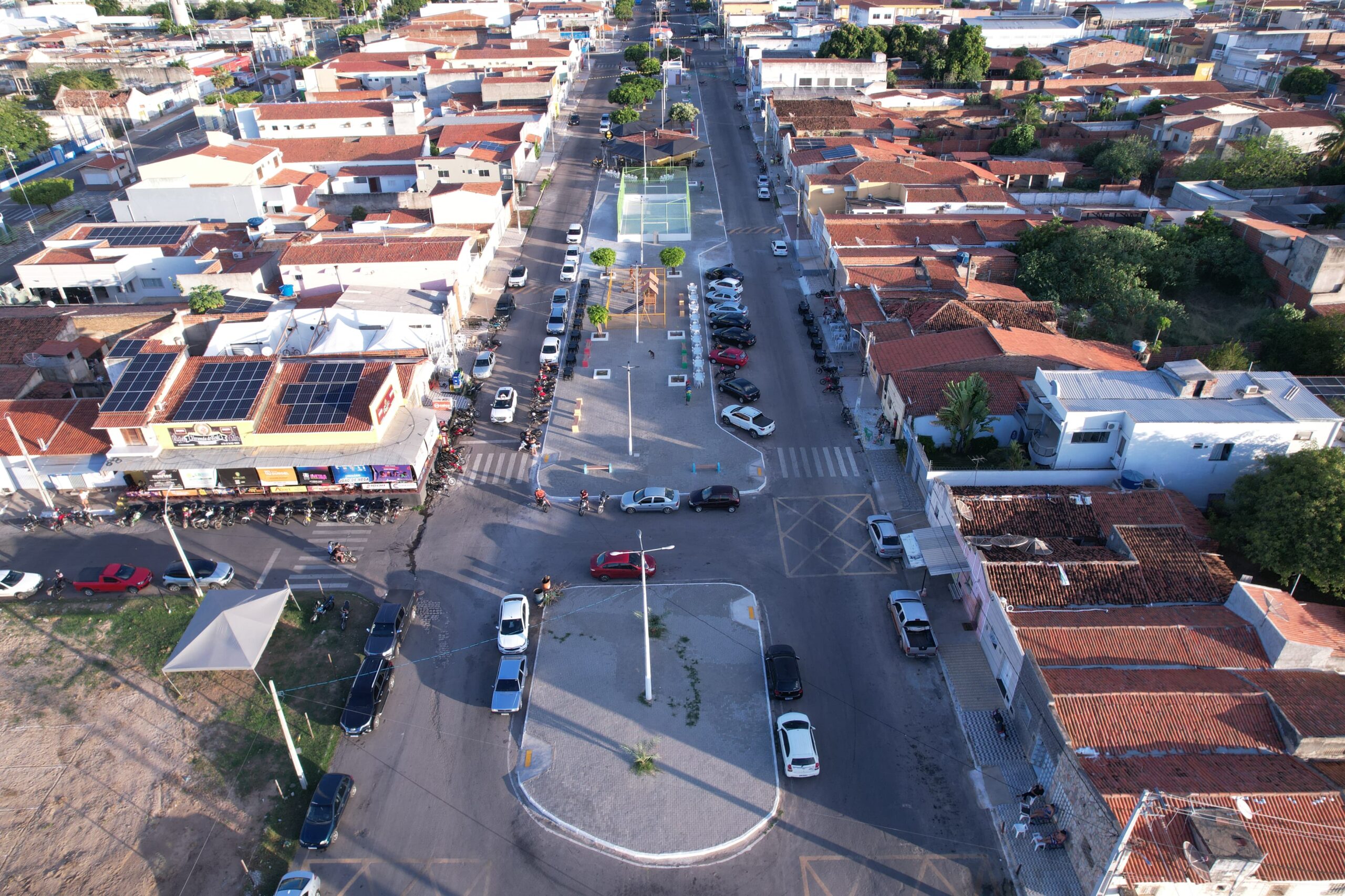 A nova praça contará com piso renovado, iluminação em LED, quadra de recreação, novos parques infantis e melhorias estruturais que beneficiam diretamente o comércio local, com áreas ampliadas para mesas e circulação.